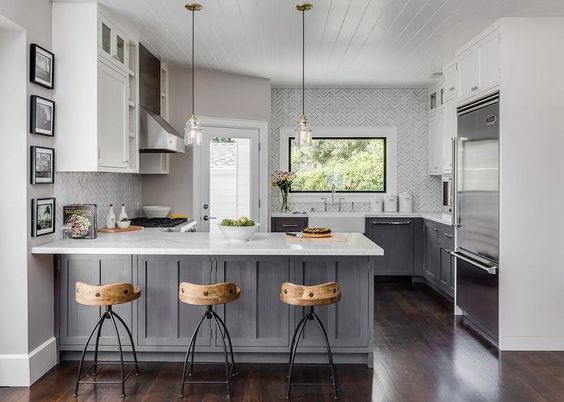 These are also known as Peninsula kitchens, and their layout has an extra counter that’s an extension of a U-shaped kitchen. So, what designs can you use?